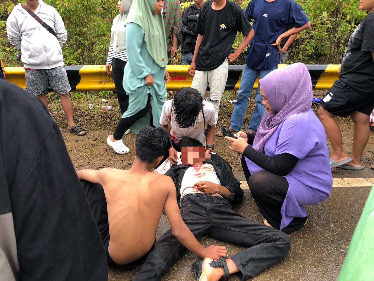 Berdasarkan keterangan saksi, Syamsidar, sepeda motor yang melaju di jalur penurunan kehilangan kendali akibat kondisi jalan licin karena gerimis, sehingga kendaraan tersebut terjatuh di badan jalan.