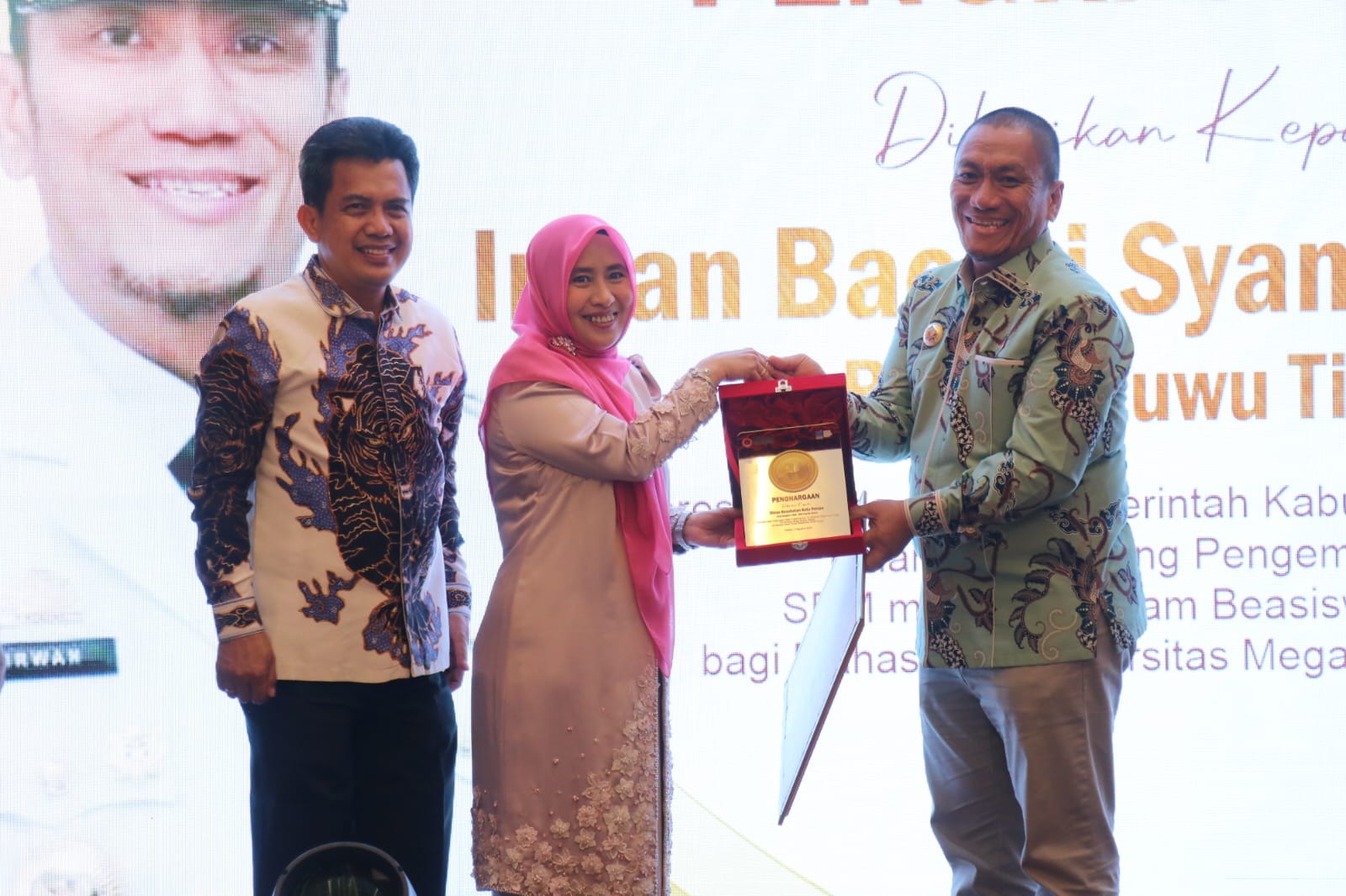 Penghargaan tersebut diberikan sebagai bentuk apresiasi atas komitmen Pemerintah Kabupaten Luwu Timur dalam mendukung pengembangan SDM melalui program beasiswa daerah bagi mahasiswa Universitas Mega Buana Palopo.