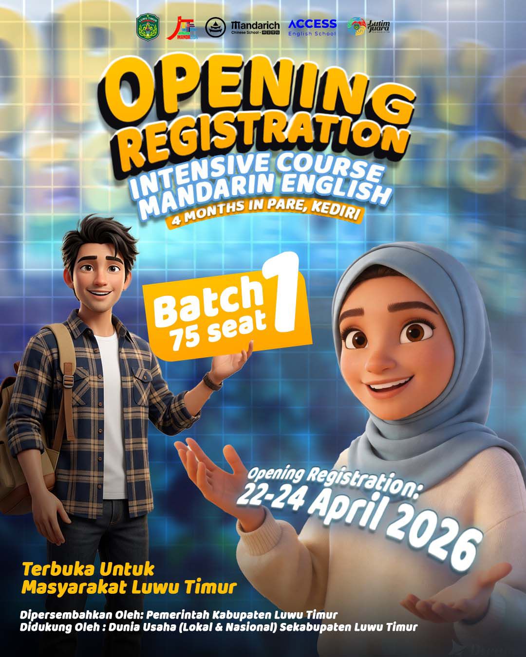 Aksaranusa, Luwu Timur – Pemerintah Kabupaten Luwu Timur terus menunjukkan komitmennya dalam meningkatkan kualitas sumber daya manusia melalui program unggulan Mandalish. Dalam waktu dekat, program ini akan segera membuka pendaftaran (open registration) batch pertama bagi para calon peserta pada tanggal 22 -24 April 2026.