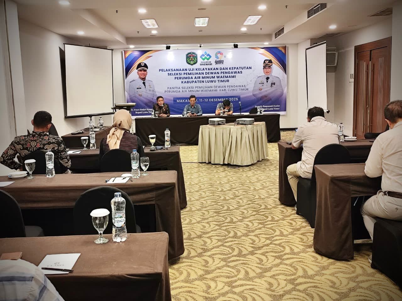 Aksaranusa, Luwu Timur – Panitia Seleksi Pemilihan Dewan Pengawas Perusahaan Umum Daerah (Perumda) Air Minum Waemami Kabupaten Luwu Timur melaksanakan Uji Kelayakan dan Kepatutan (UKK) bagi bakal calon Dewan Pengawas Perumda Air Minum Waemami di Hotel Claro, Makassar, Jum’at (12/12/2025).